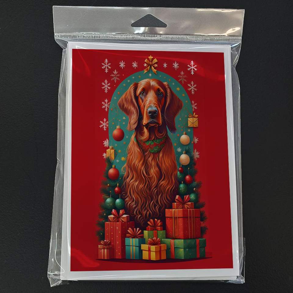 Tarjetas de felicitación de Navidad navideñas de Setter irlandés, paquete de 8 tarjetas de notas en blanco caprichosas de tamaño A7 5x7 con sobres