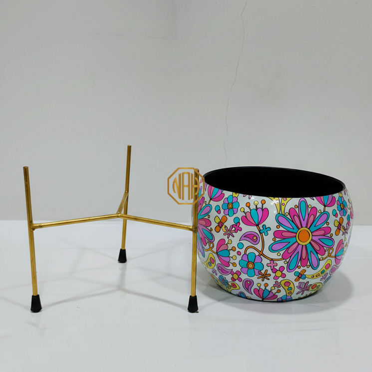 Maceta Decorativa de Hierro Esmaltado con Diseño Impreso para Mesa, Centro de Mesa, para Bodas, Hogar, Oficina, Exportador y Fabricante de la India