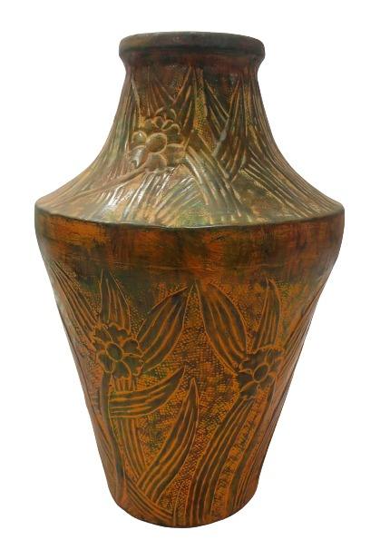 Maceta de Metal con Relieve Vintage, Acabado Antiguo, Urna Decorativa de Hierro, Centro de Mesa Alto Hecho a Mano para Hogar, Sala de Estar, Hotel