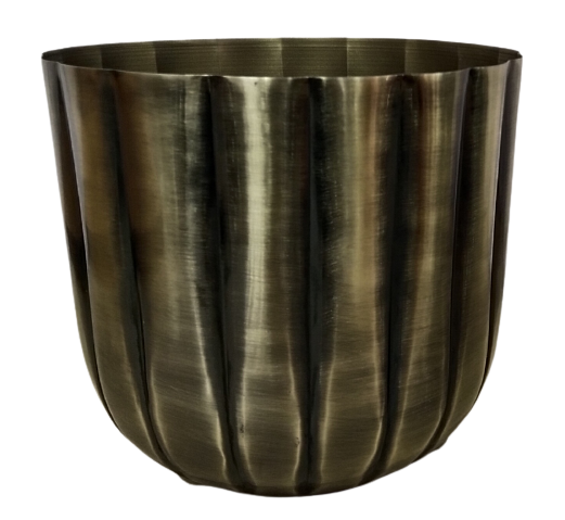 Maceta Redonda de Metal Acanalado de Latón Antiguo, Decorativa para Interiores y Exteriores, para Plantas y Flores, Decoración para Hogar y Jardín