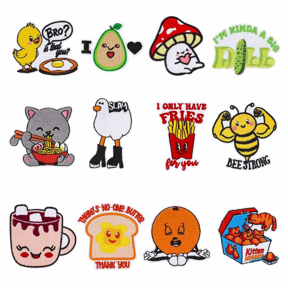 Parches Termoadhesivos Personalizables con Diseños de Animales, Gatos, Hongos y Pollitos Bordados, para Decoración de Bolsas
