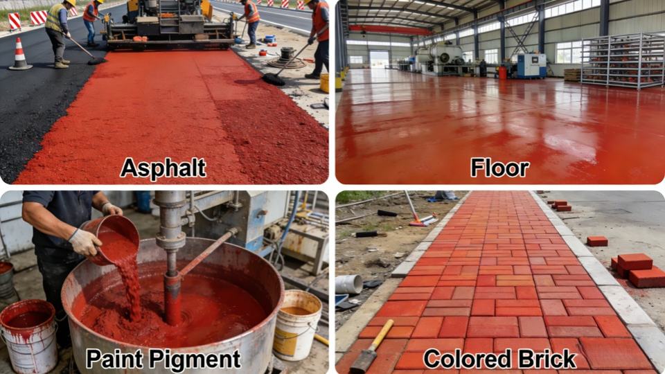Pigmentos de cerámica, Pigmento para revestir, Pigmento cosmético, Plastico & Pigmento de Goma, Pigmentos de cuero, Pigmentos de tintaAplicación