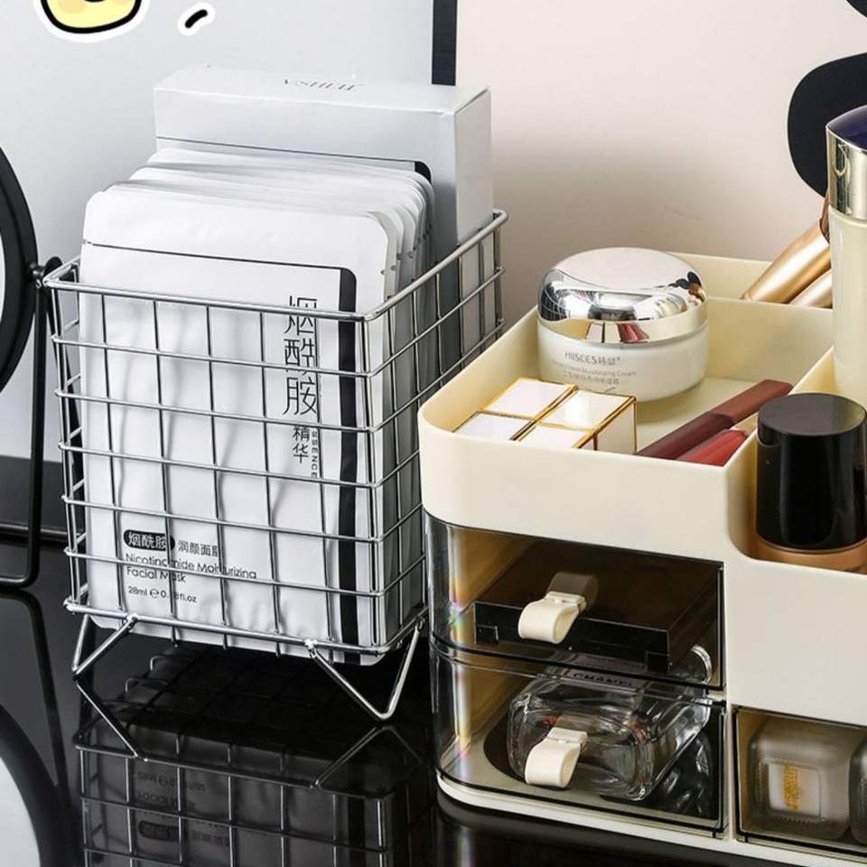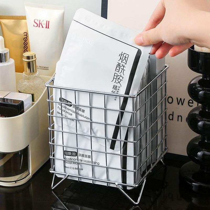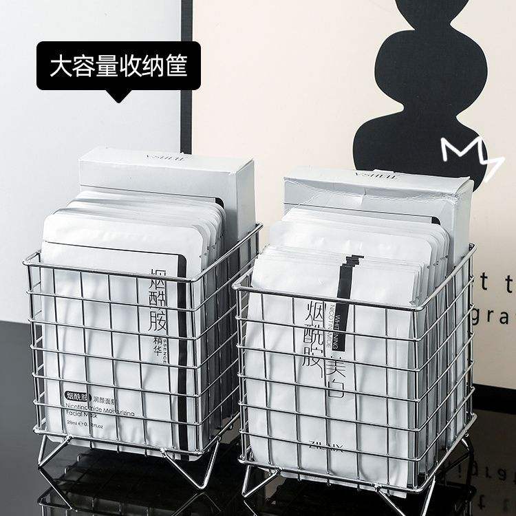 Cesta de Almacenamiento de Hierro Rectangular de Gran Capacidad, Organizador de Escritorio de Oficina Tipo Soporte para Cosméticos y Mascarillas Faciales