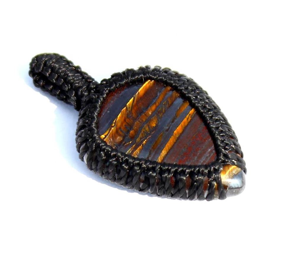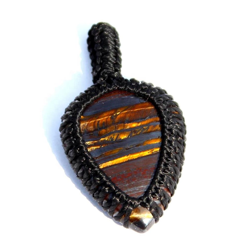 Tigre de hierro moda plateado colgante corazón gota forma cabujón macramé cordón cristal Natural curación Piedras budista encanto collar
