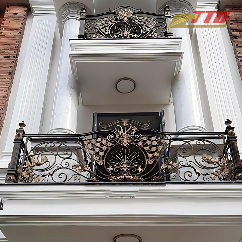 Barandilla de balcón de hierro forjada a mano en Vietnam barandilla decorativa para exteriores hecha con hierro duradero recubierto de polvo