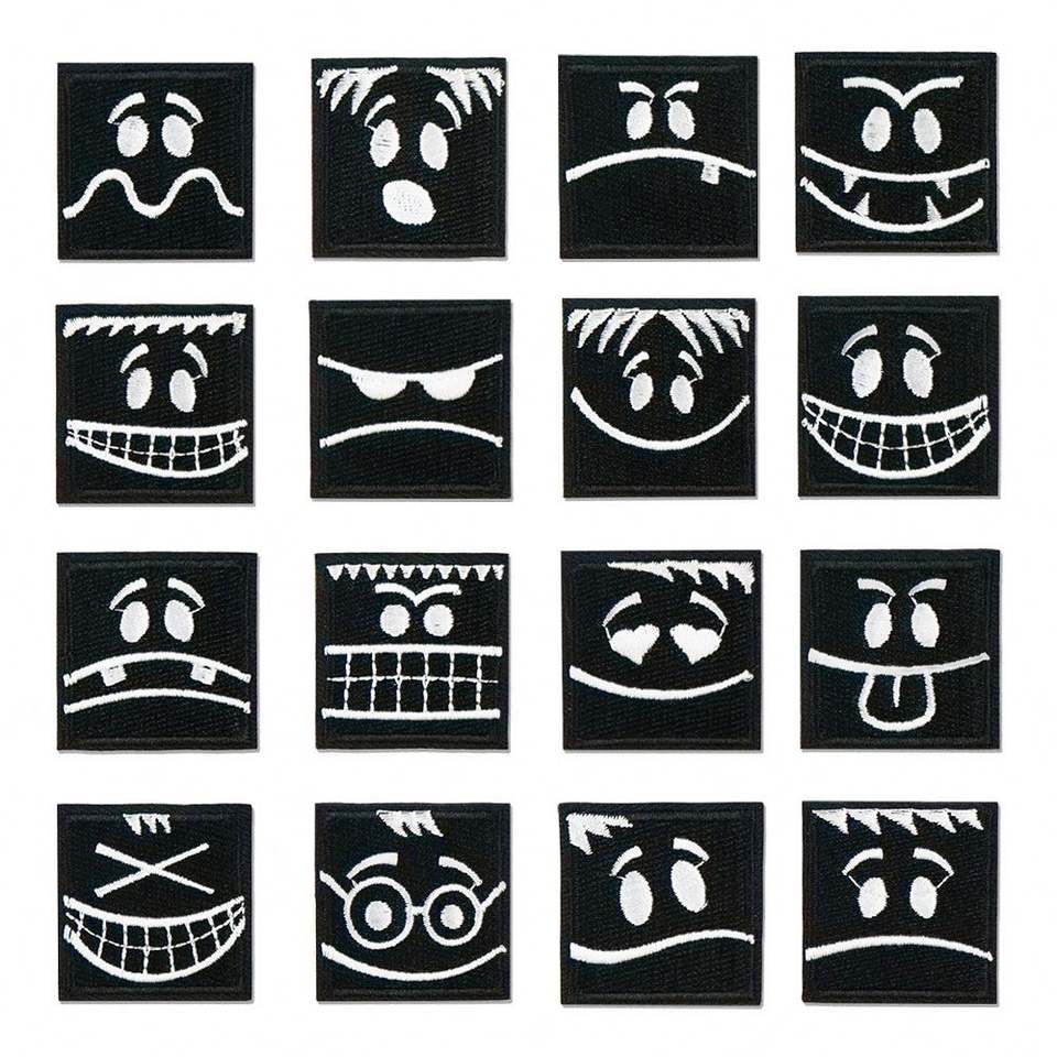 Iron on Computer Embroidery Creative Black Square Funny Expression Woven Fabric Cloth Patch for Clothes Hats Backpacks