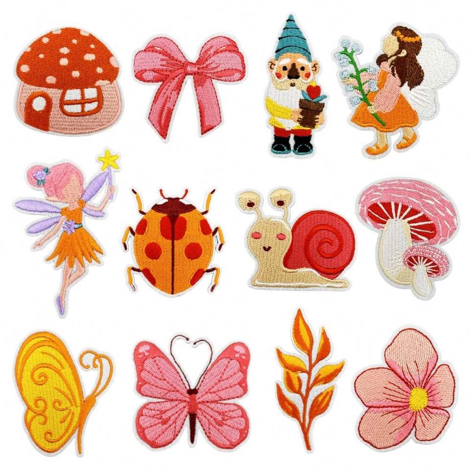 Parches Termoadhesivos Bordados con Lindas Flores de Primavera, Ángeles, Mariposas, Lazos, Abejas, Casas, Hongos para Decoración de Ropa y Bolsos Infantiles