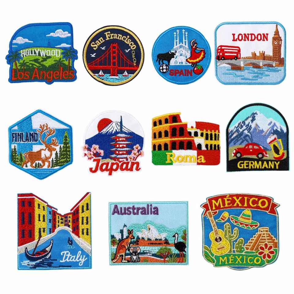 Parche Bordado Termoadhesivo con Temática Urbana: Ciudad de México, San Francisco, Estados Unidos, Japón, Londres, Alemania