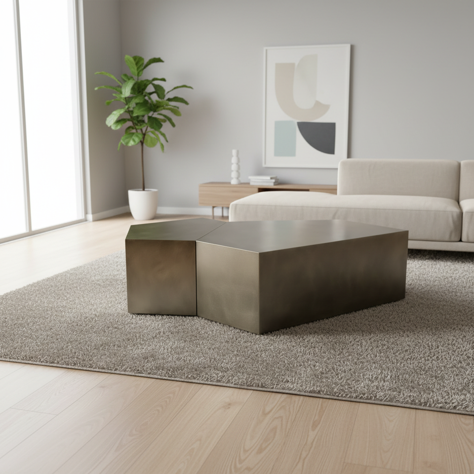 Mesa de Centro Moderna Irregular y Móvil, Estructura de Acero Inoxidable Resistente y Ecológica con Pintura en Aerosol, Muebles para Sala de Estar