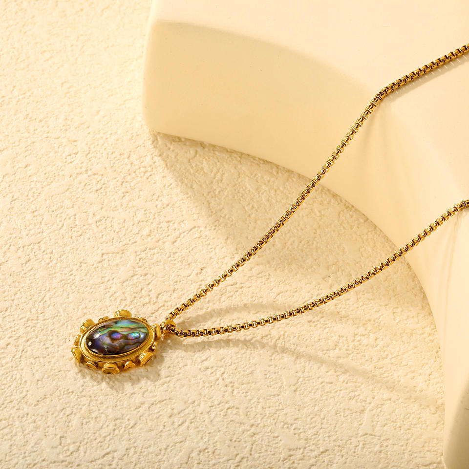 Colgante de concha de abulón ovalado irregular, collar con cadena chapada en oro para mujer, joyería de moda, estilo informal, diseño geométrico