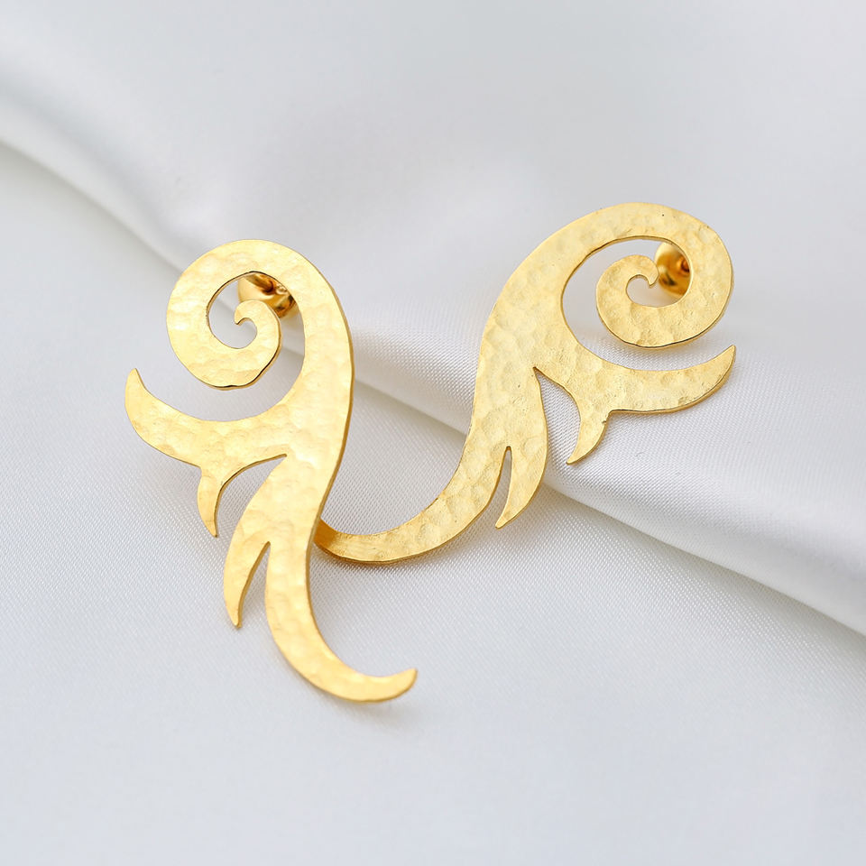 Pendientes de plata de primera ley con forma Irregular para mujer, aretes pequeños, plata esterlina 925, Estilo Vintage, oro de 22 quilates, estilo turco
