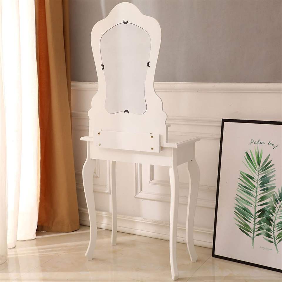 Set de Maquillaje con Espejo Individual Irregular, 3 Cajones y Taburete Acolchado, Estación de Belleza para un Estilo Elegante