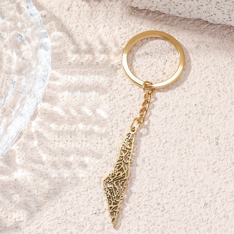 Islam musulmán árabe caligrafía mapa Palestina colgantes de acero inoxidable joyería de moda llavero hombres mujeres a granel al por mayor 2025