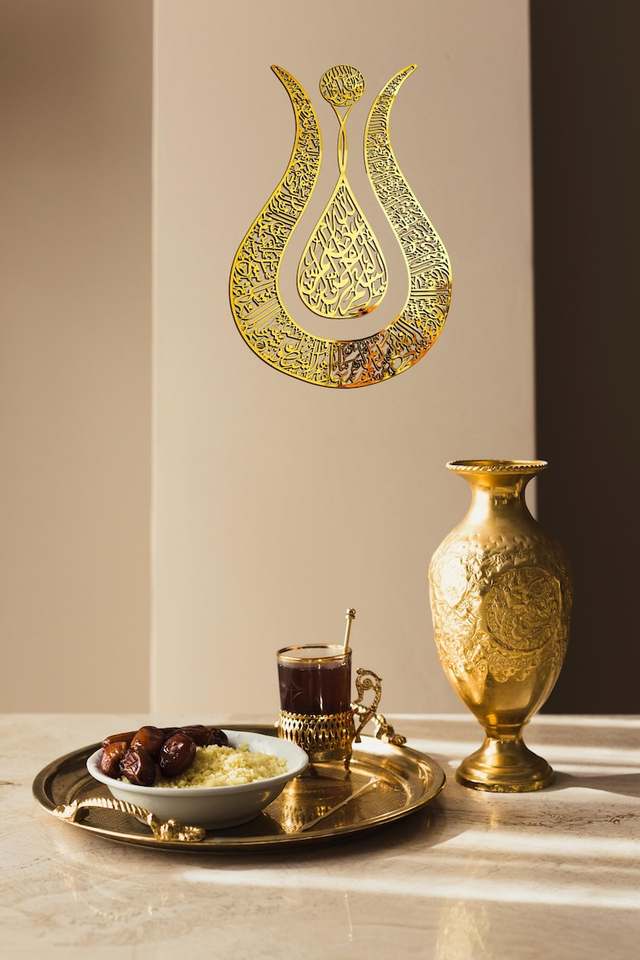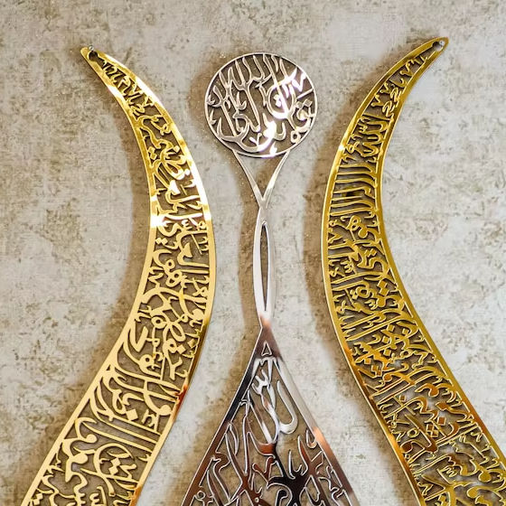 Espejo de Pared Metálico Islámico Moderno, Color y Forma Personalizados, Decoración Islámica para el Hogar, Caligrafía Árabe, Espejo Decorativo Musulmán