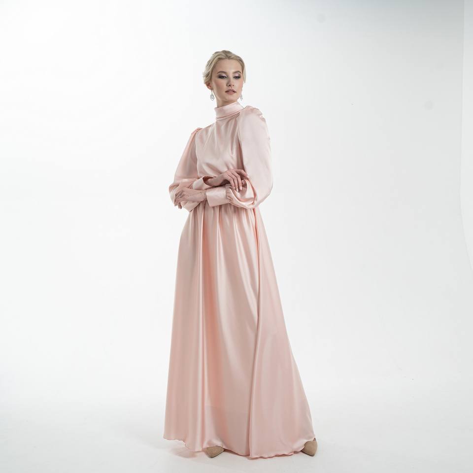 Vestido islámico modesto con tocado para mujeres musulmanas, vestido de boda de Color en polvo, ajustado, Abaya