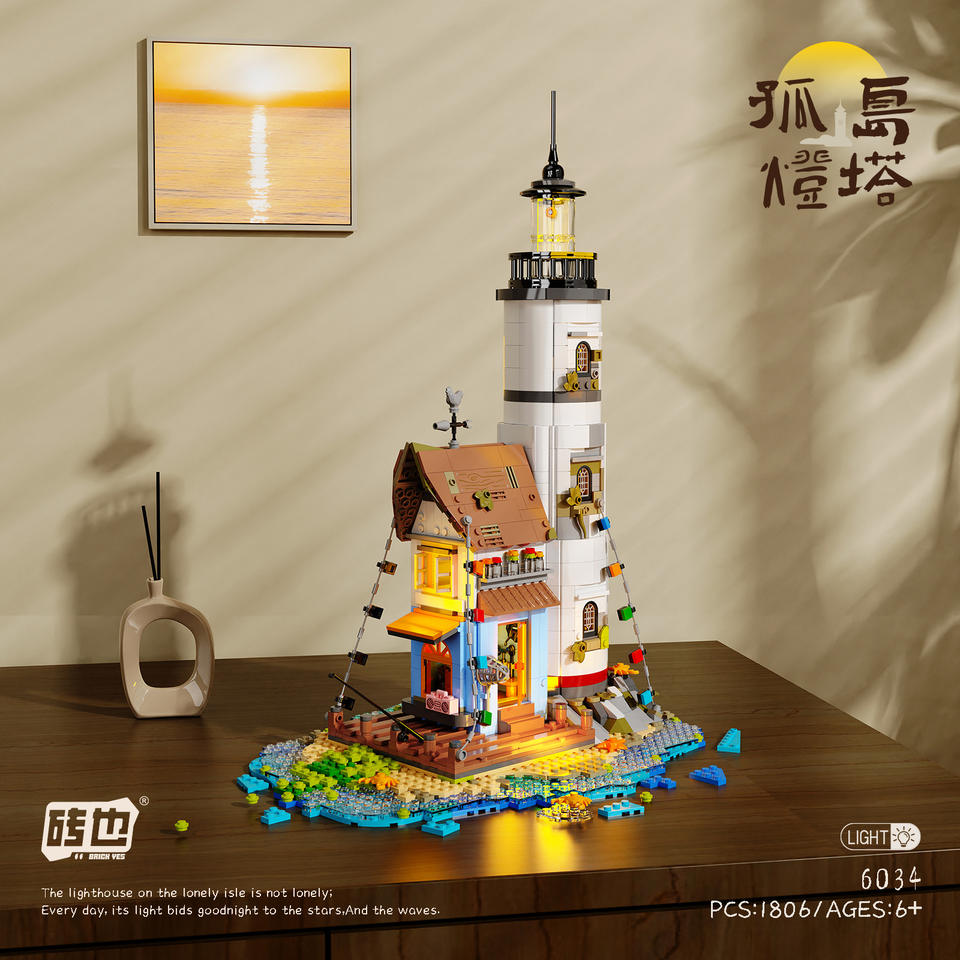 Juego de bloques de construcción Island Lighthouse, 1806 piezas, con función de luz, para mayores de 6 años