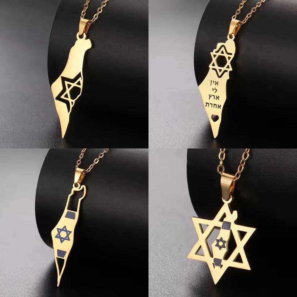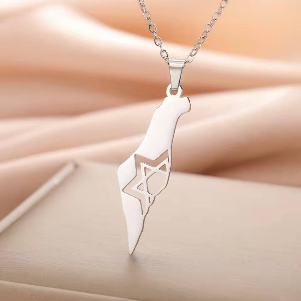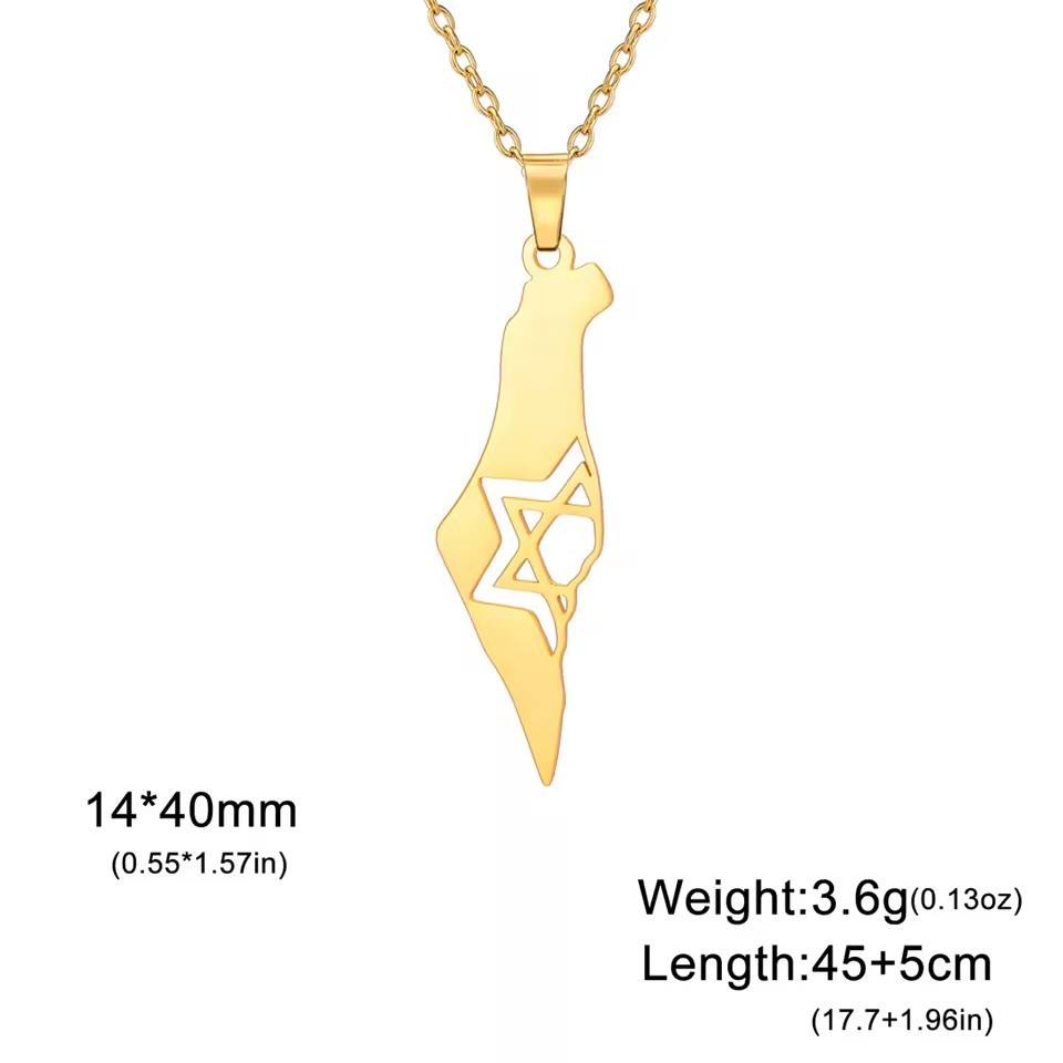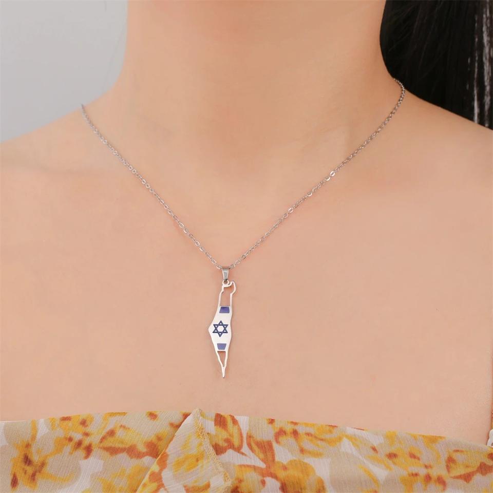Collar de mapa de Israel, nuevo diseño, collar con colgante impermeable de estrella de David esmaltado, collar impermeable de alto pulido