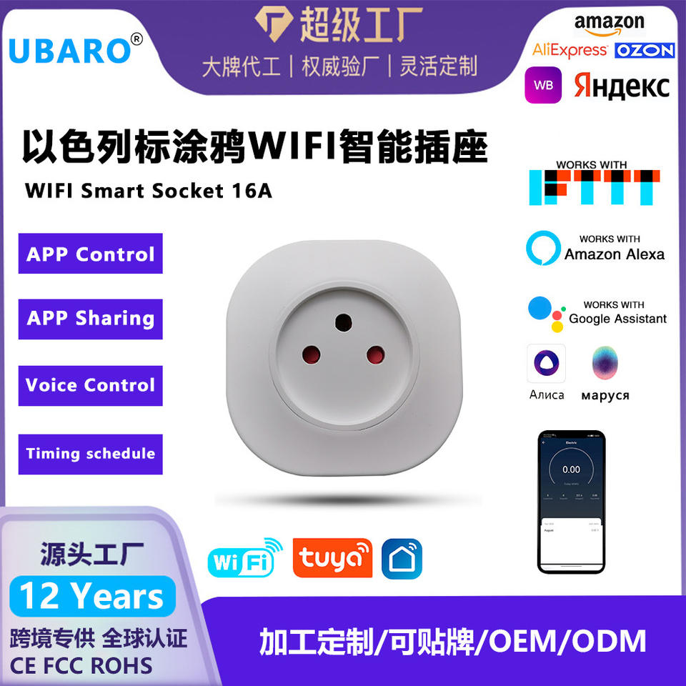 Enchufe inteligente estándar israelí de 16A con Wifi, control por voz y función de temporizador para automatización del hogar