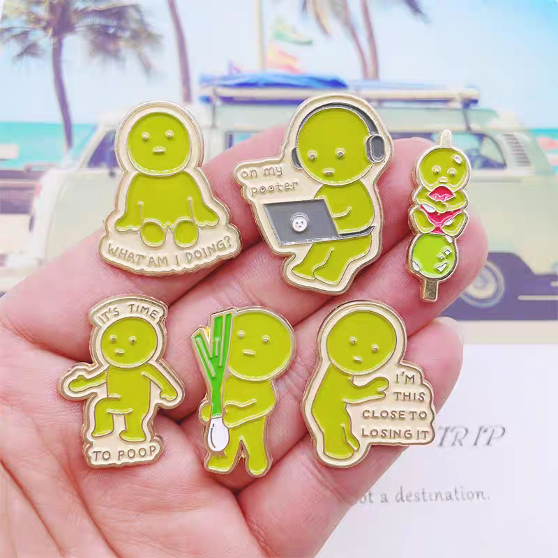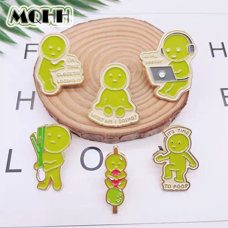 Pin de Esmalte Personalizado con Diseño de Sonny Angel, Divertido y Original, Broche de Muñeco Verde, Insignia de Solapa, Linda Figura Verde Pequeña