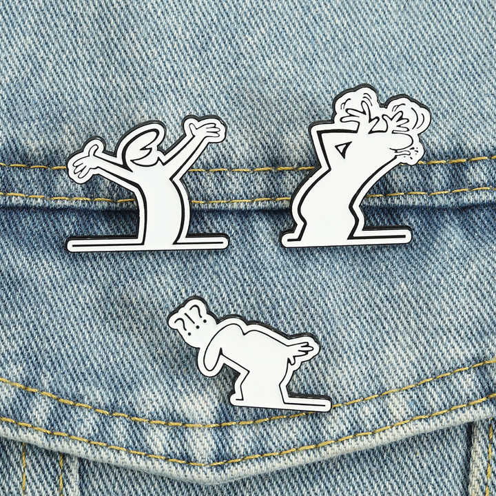 Pins de esmalte de personajes de animación de comedia italiana, caras divertidas, poses dinámicas, broche de dibujos animados, insignia de solapa, venta al por mayor
