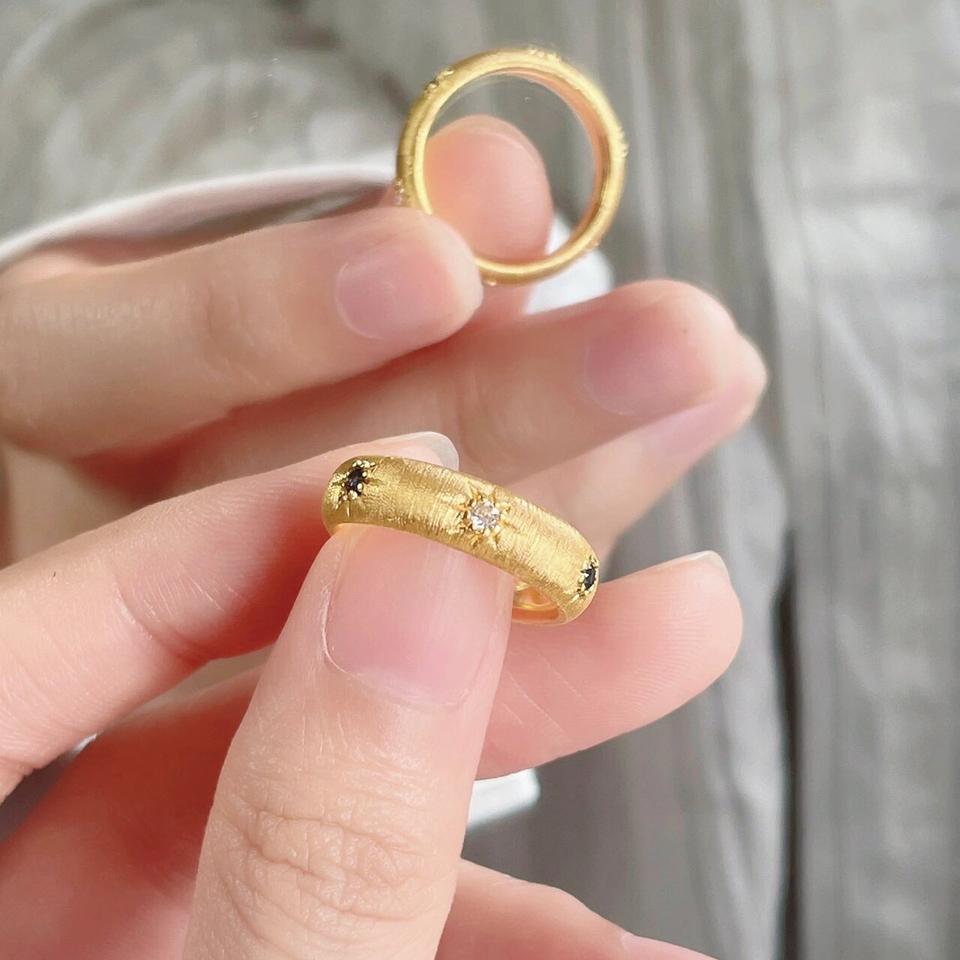 Anillo Retro de Palacio con Estrellas de Oro de 18K, Fabricación Italiana, con Plata Pura S925 y Textura de Terciopelo, Anillos de Moda