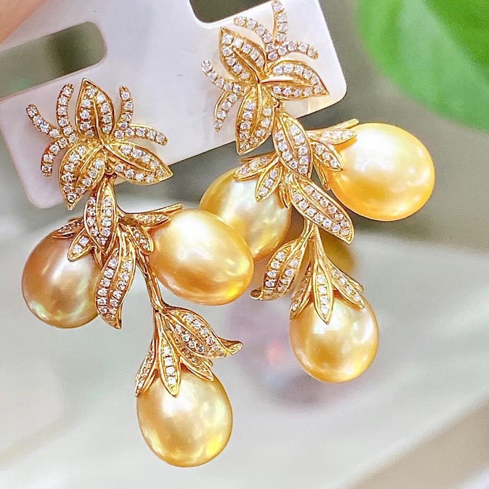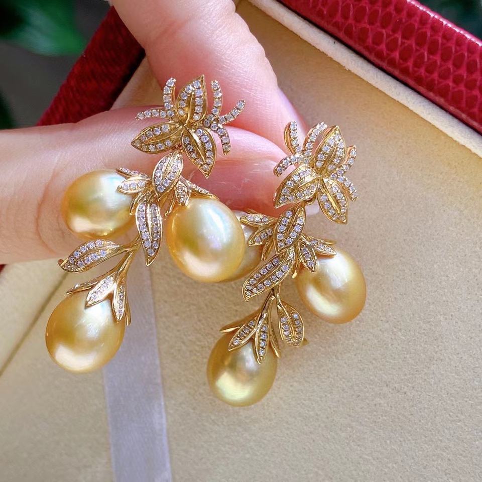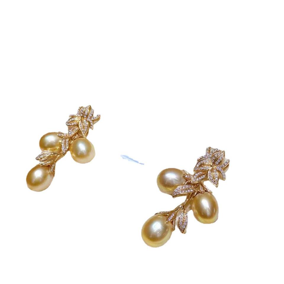 Pendientes Colgantes de Cuentas de Oro Natural de 9-10 mm, Estilo Retro Moderno de Diseño Italiano, Textura de Oro K Casi Impecable, Accesorio de Moda