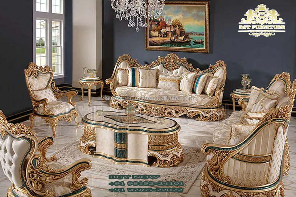 Juego de Sofás de Madera Hechos a Mano en Italia, Sofá de Estilo Italiano de Lujo con Tallados Intrincados, Muebles de Madera para Sala de Estar, Australia