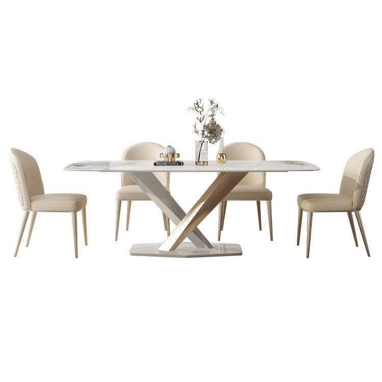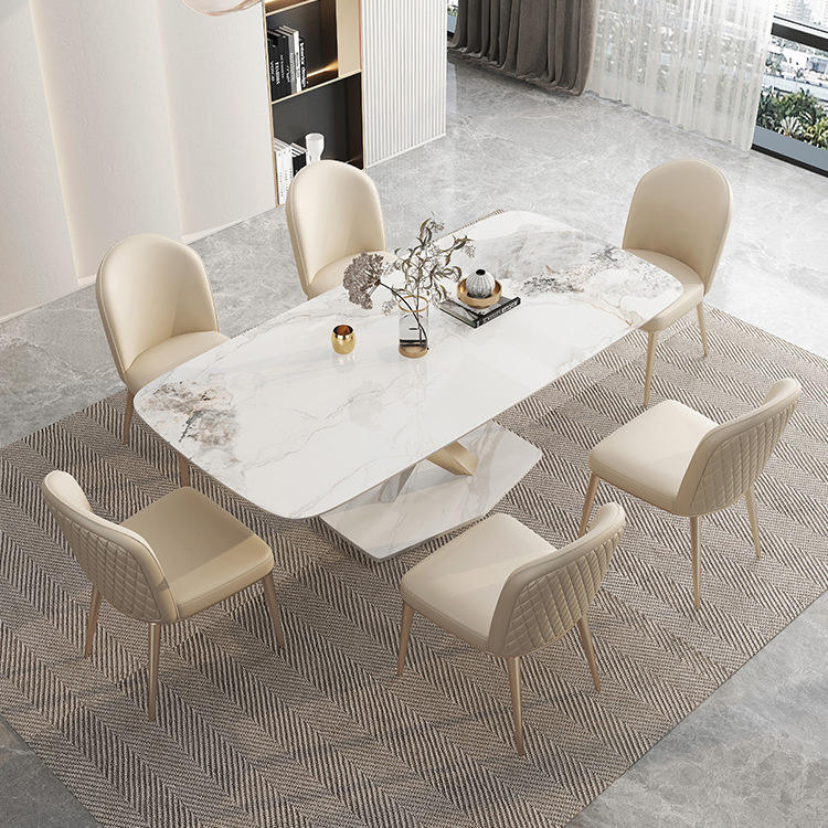 Juego de mesa de comedor moderna ligera italiana, mesa de comedor y silla de diseño Rectangular Simple para el hogar