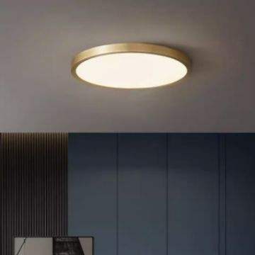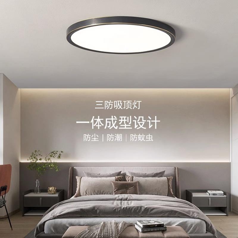 Lámpara de Techo LED Minimalista Italiana Moderna y Sencilla de Cobre Negro Ultrafino para Dormitorio, Balcón, Pasillo con CCT de 6000K