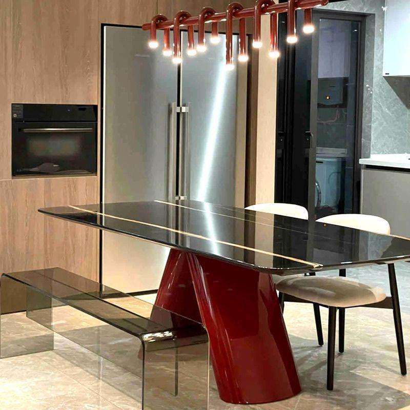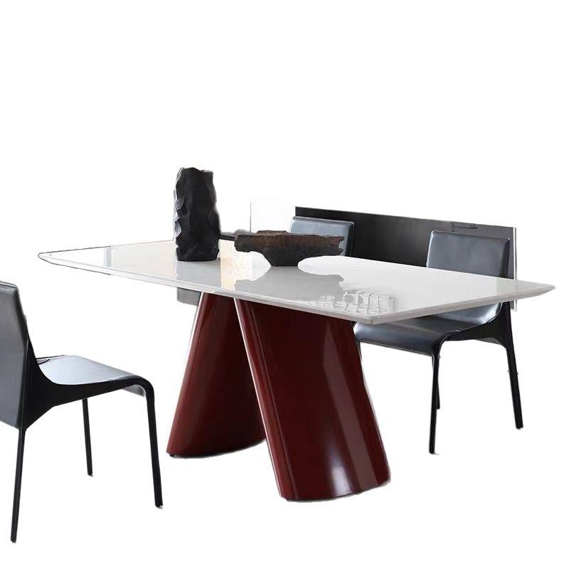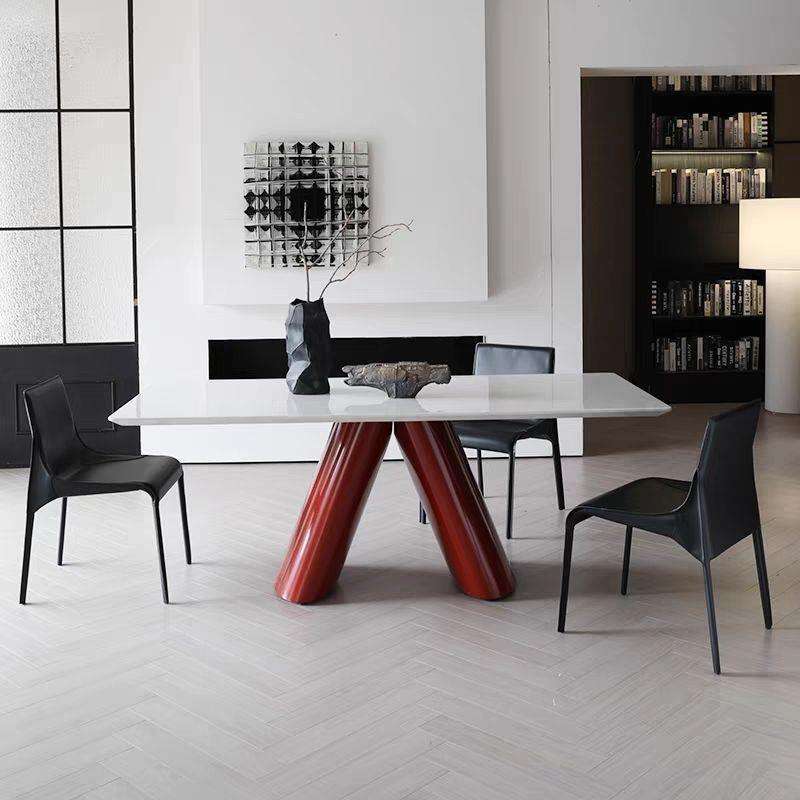 Mesa de Comedor Rectangular de Mármol Estilo Minimalista Italiano, Diseño Moderno, Estructura Estable para Sala de Estar