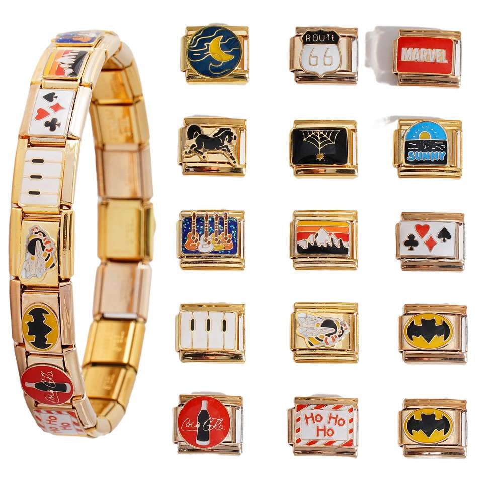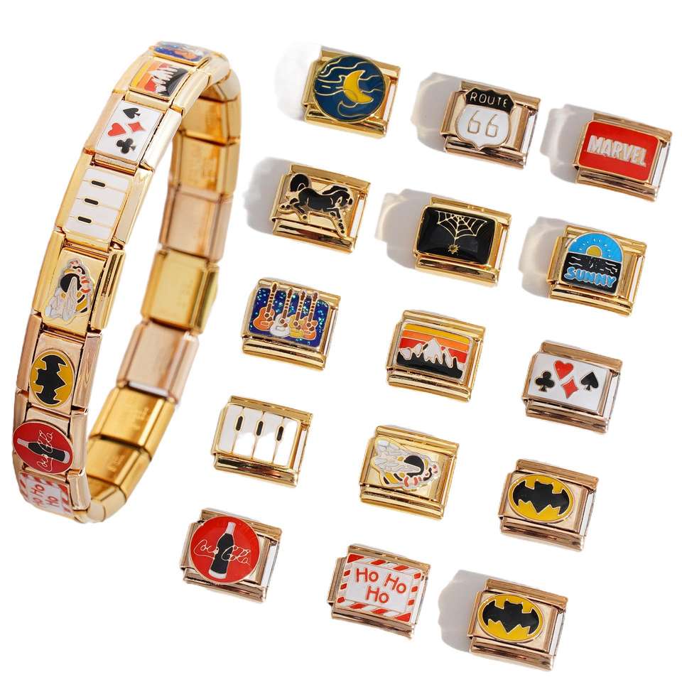 Pulsera Modular Italiana de Acero Inoxidable con Eslabones Cuadrados y Engaste de Bisel, Joyería de Regalo