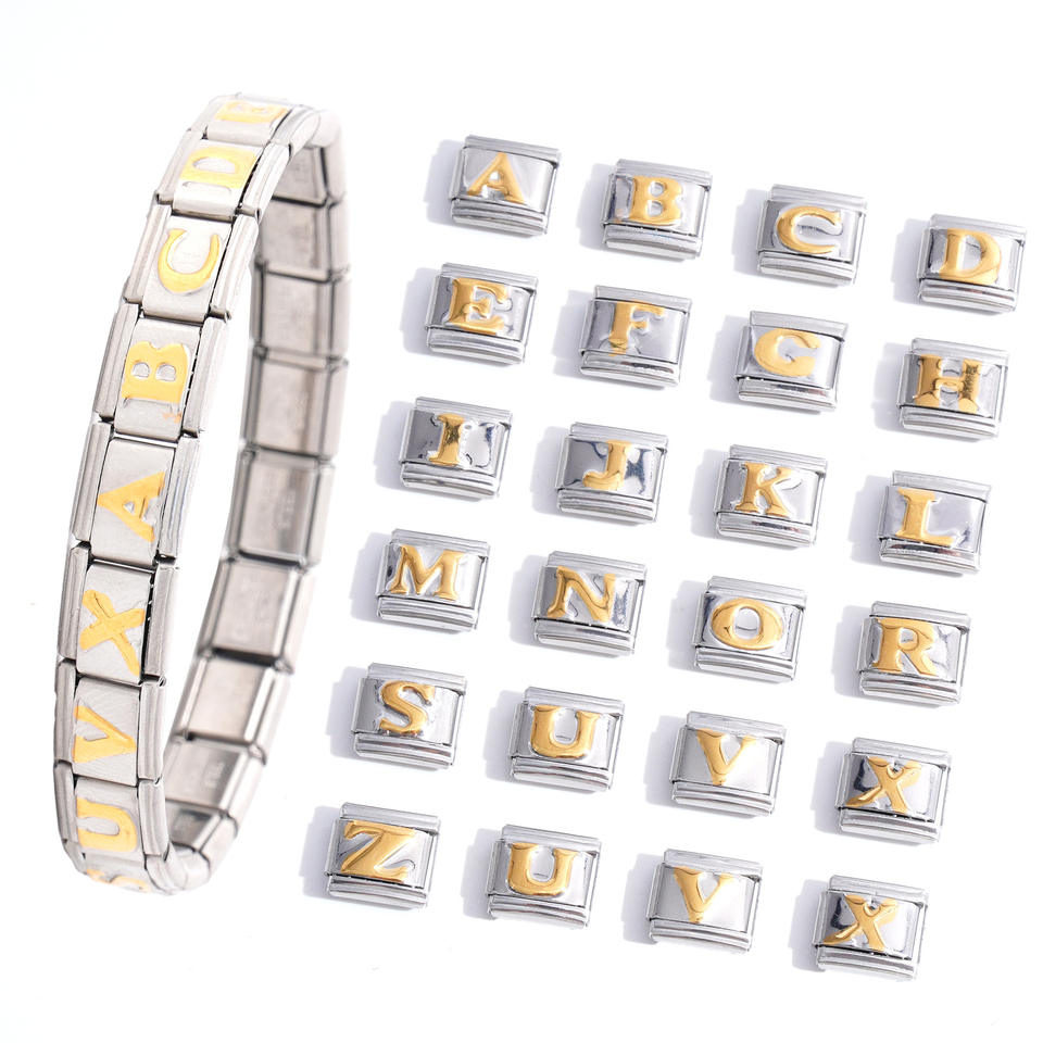 Pulsera Modular Italiana de Acero Inoxidable con 26 Letras del Alfabeto, Dijes para DIY, Joyería Unisex, Accesorio de Regalo