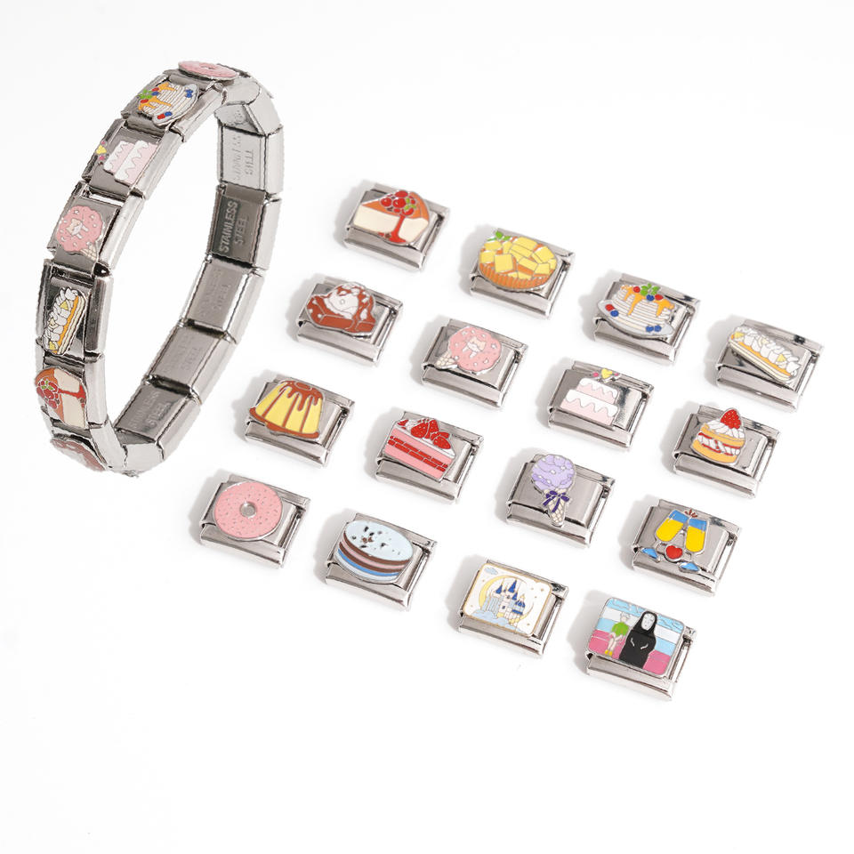 Pulsera Modular Italiana de Acero Inoxidable con Dijes Temáticos de Comida, Cadena de Joyería Unisex DIY