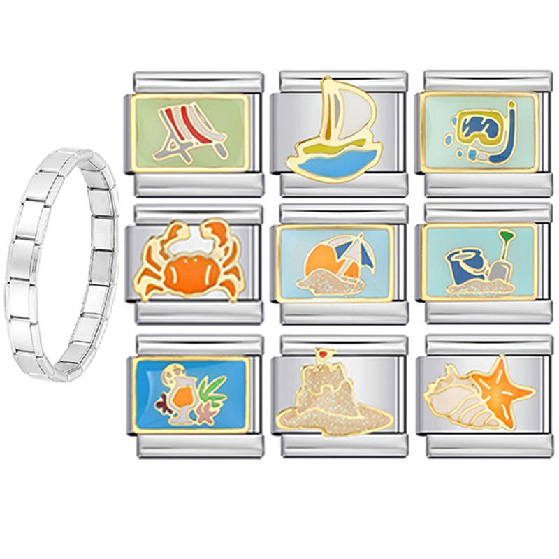 Italian Modular Stainless Steel Bracelet With Ocean Beach Theme Charms Unisex Jewelry DIY Fashion Beads