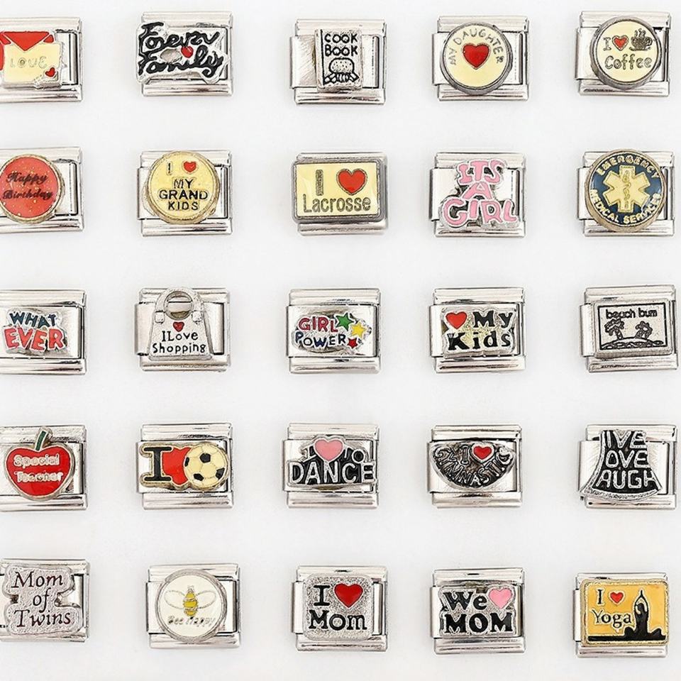Pulsera de Charms Italiana de Acero Inoxidable Chapada en Oro, DIY, Elástica, con Letras Inglesas, Accesorios Modernos y a la Moda