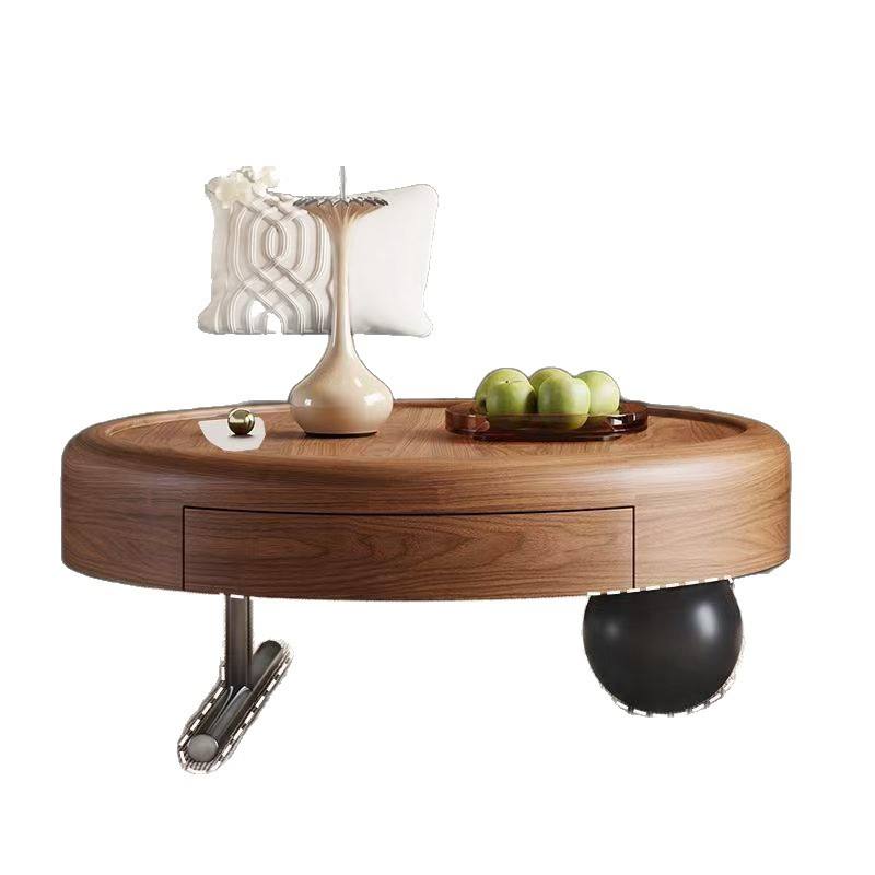 Mesa de Centro Redonda de Madera Maciza Italiana de 80 cm, Estilo de Diseño para Apartamentos Pequeños