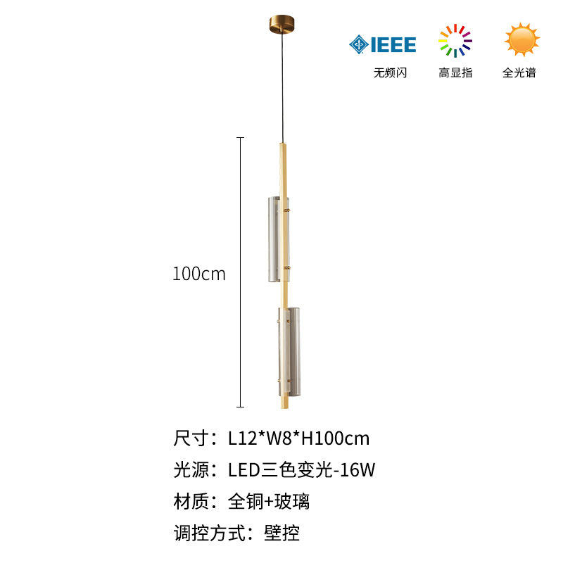 Lámpara Colgante de Techo de Estilo Italiano, Totalmente en Cobre y Vidrio, para Dormitorio Principal, Estilo Postmoderno, de Alta Gama, para Sala de Estar, Sofá, Araña