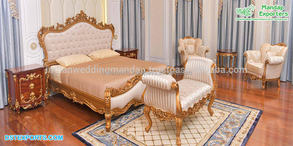 Juego de mesa de comedor de talla de oro de estilo italianoNombre del producto