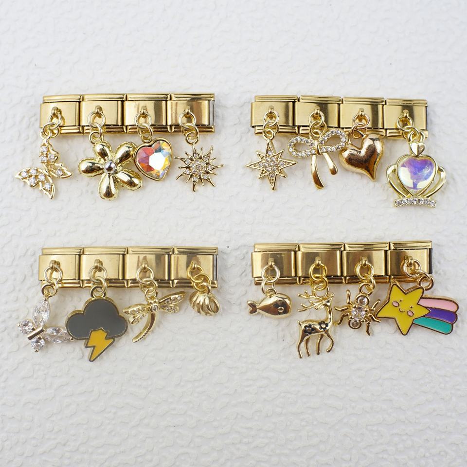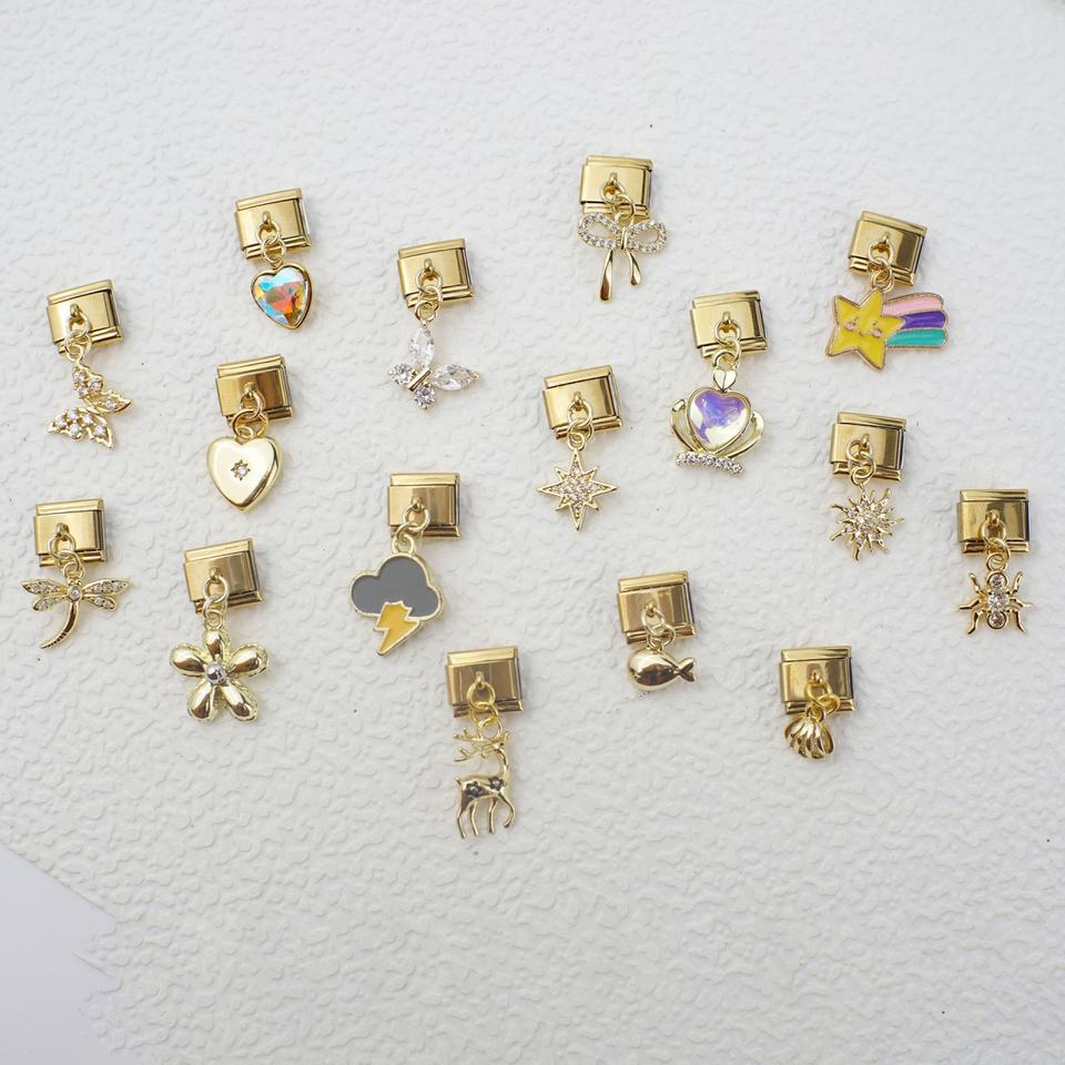 Nueva Serie de Pulseras Modulares Estilo Italiano con Colgantes, Base Dorada, Diseño Personalizado, Cadena de Ensamblaje, Pulseras con Dijes a la Moda