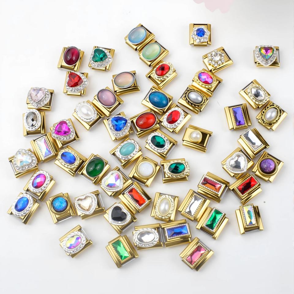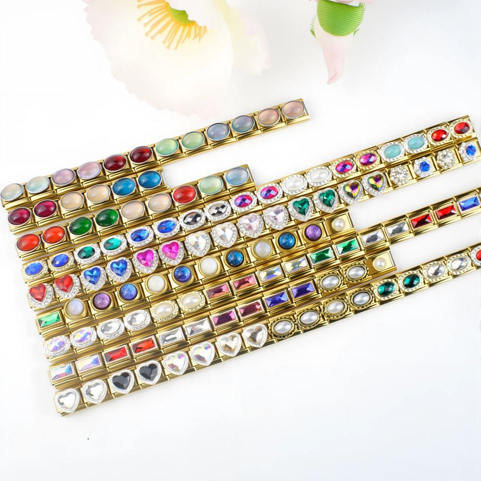 Nueva Serie de Pulseras Modulares de Cadena Estilo Italiano, Diseño con Gemas Doradas, Personalizables, de Acero Inoxidable Chapado en Oro, Unisex