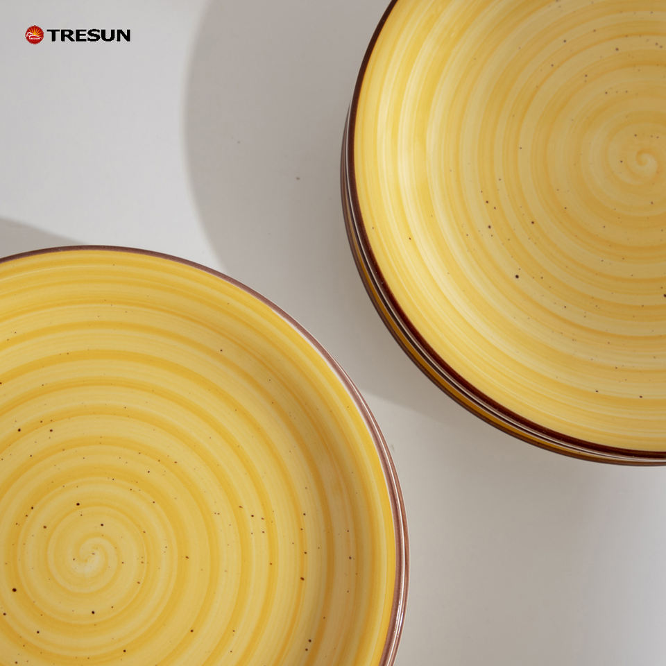 Vajilla de restaurante redonda marrón con borde intacto de estilo italiano, platos de cerámica de porcelana para banquete de boda