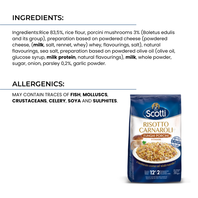 Rizotto Italiano de la Mejor Calidad, Textura Suave, Arroz Carnaroli, Champiñones Secos para una Comida Saludable