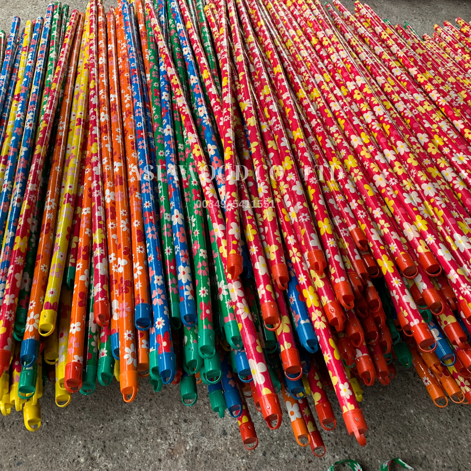 Palos de fregona de madera de PVC recubiertos de hilo italiano con flores de colores, venta al por mayor, manijas de escoba vietnamitas, escobas recogedoras