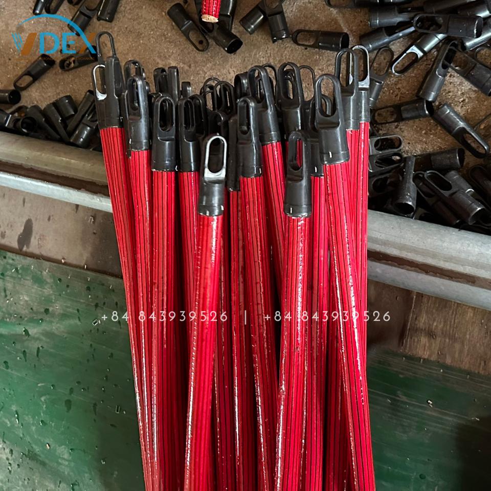 Cabezal de plástico largo de hilo italiano para limpieza de suelos, palo para el hogar, barra de fregona de calle de PVC con rayas rojas, mango largo de escoba de madera