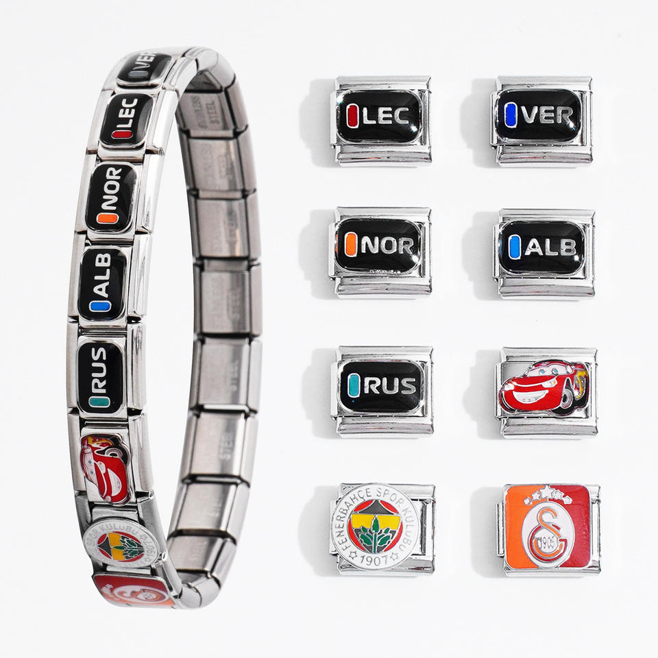 Pulsera Modular de Acero de Titanio Italiano, Eslabones Desmontables Personalizables con Letras y Diseño de Coche, Joyería de Regalo