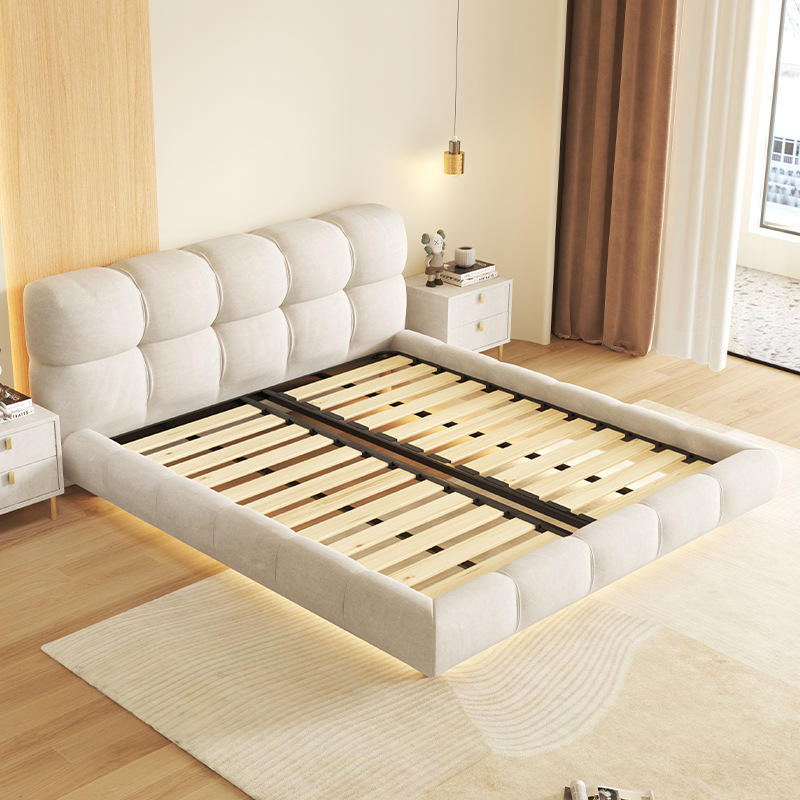 Cama de Diseño Simple Tipo Italiano para Dormitorio, Cama Suspendida con Luz LED, Estructura de Cama Doble Tamaño King