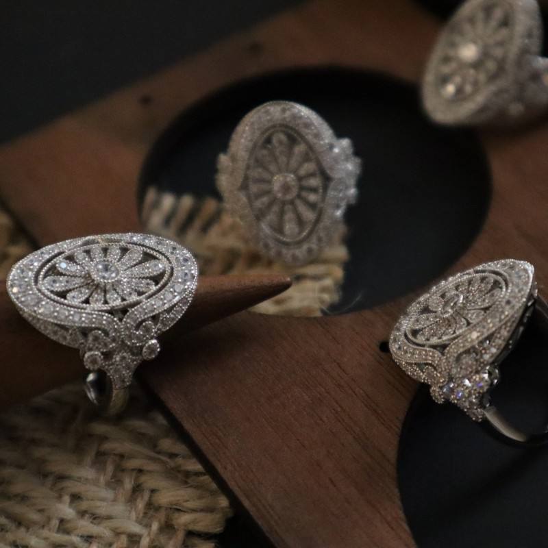 Anillo Italiano Vintage con Diamantes en Forma de Margarita, Plata de Ley S925, Corte Radiante, Diamantes Completos, Flores Huecas, Anillo para el Dedo Índice