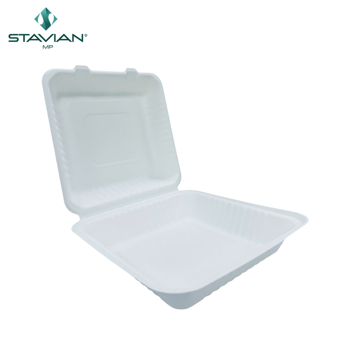 Envase Ecológico de 1070 ml que Garantiza la Seguridad Alimentaria y No Contiene Productos Químicos Tóxicos, Fibras de Origen Vegetal, Diferentes Tamaños, Nuevo Envase Tipo Concha de 8x8 Pulgadas