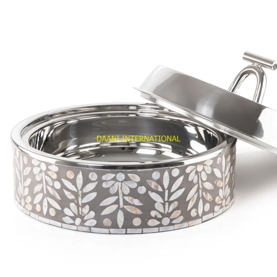 Cazuela Hotpot de acero inoxidable con incrustaciones de color blanco marfil con diseño floral de nácar, plato aislado para servir para banquete, comedor