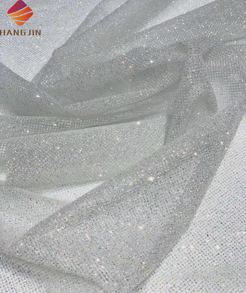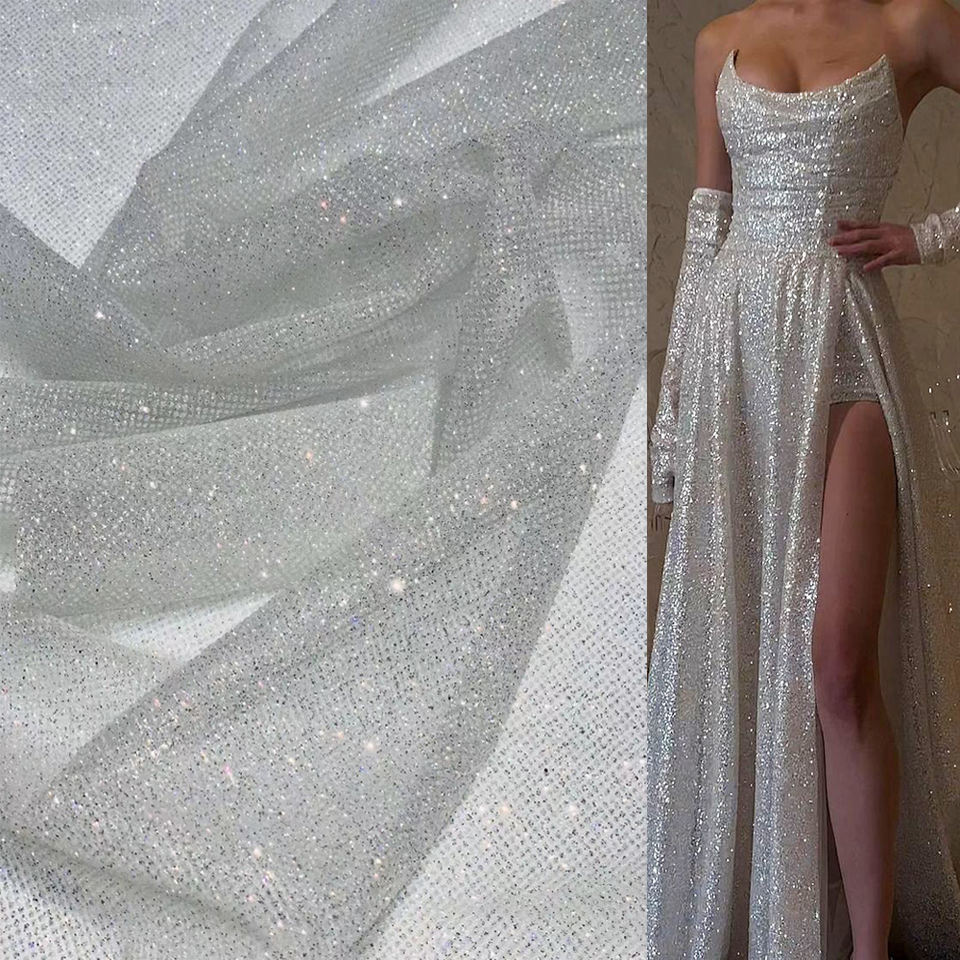 Tela de tul brillante con purpurina blanca marfil, encaje con purpurina pegada, tela de encaje con lentejuelas brillantes para vestido de novia